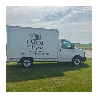 I LOVE Farm to Wick!!! Their candles are the best! The soybean wax they use does not leave a soot ring on my ceilings. As a farmers wife I like how they are using something that we produce. It is a unique experience to choose my own combination of scents. Working with Amy and Alice completes the experience. These two women love what they do and it shows.Â